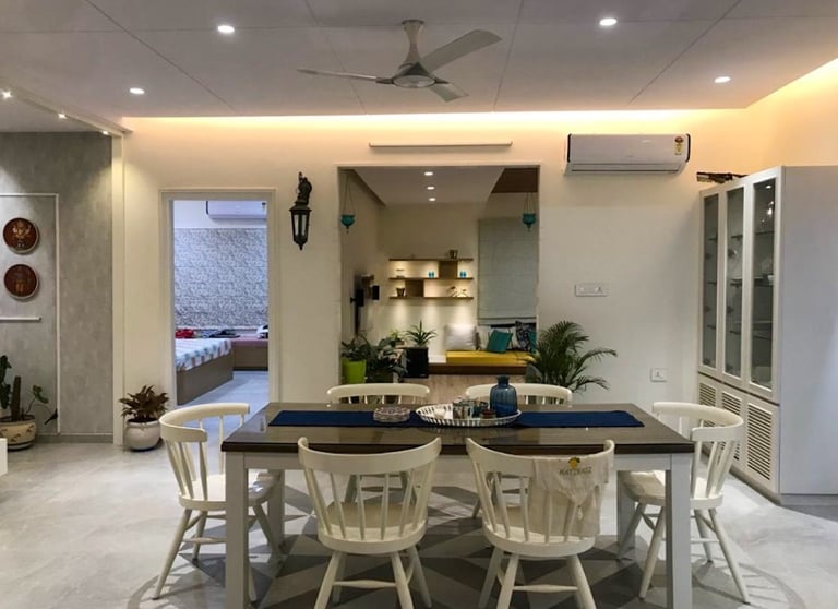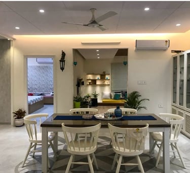 Minimalism was the way forward, be it Materials, Furniture, colors. Openness, Straight lines keeping things as simple as possible. Being a 4 BHK apartment, typically the available spaces were adequate if not lavish, so to create a sense of openness was something that was necessary.
